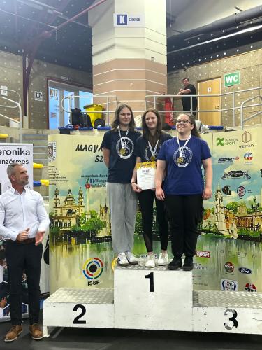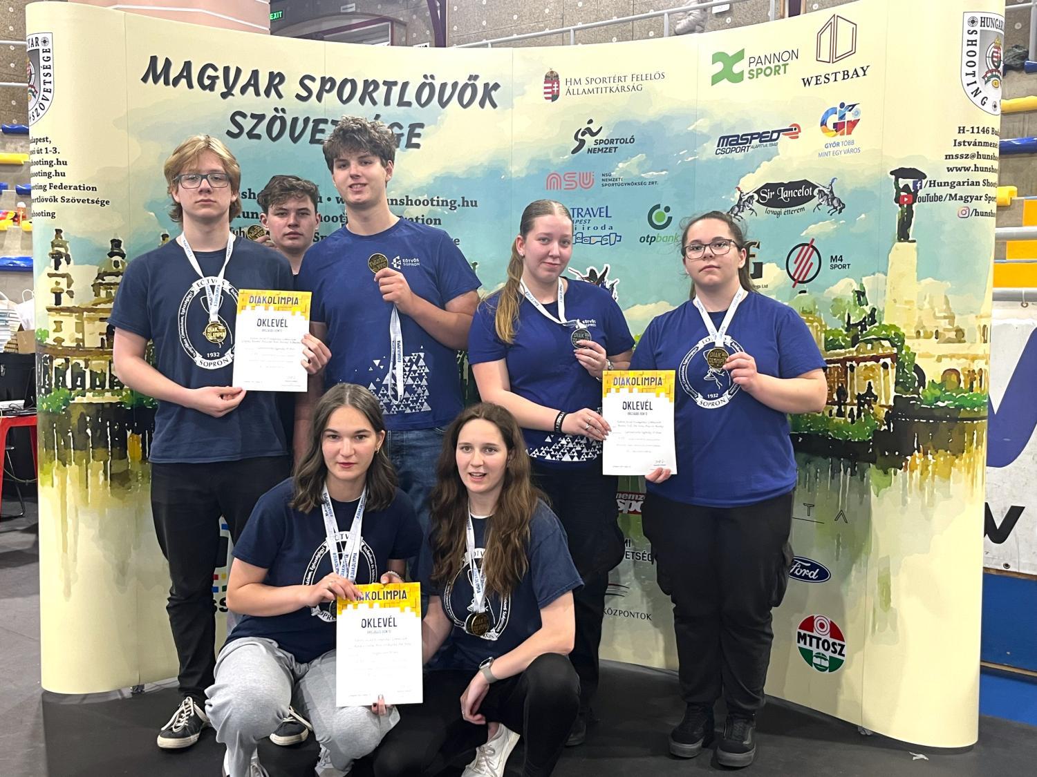 Az Országos Diákolimpia Sportlövészet Döntőre a hajnali indulást követően, 11-kor álltak először lőállásba sportolóink légpuskával a kezükben. Egyéniben nem értek el kimagasló eredményt, de csapatban kiválóan teljesítettek, a lányok ezüstérmet lőttek Pál Nóra, Prajczer Bianka (12. B) és Bialous Nelli (11. B) összeállítású csapat, a fiúk pedig Gyurika Roland (12. A), Pratscher-Hart Botond és Kőhalmy Soma (10. B) alkotta csapattal bajnokok lettek. A légpisztoly versenyre estig kellett várni, ahol a lányok újból lőállásba álltak és a dobogó legmagasabb fokára lőtte magát a végzősökből álló csapat: Kovács Zsófia (12. C) és Pál Nóra, Prajczer Bianka (12. B).