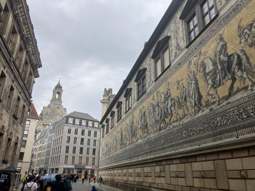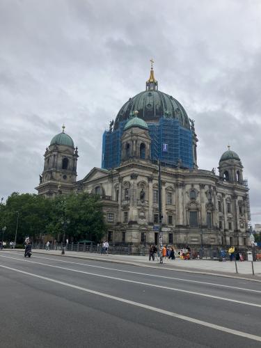 Július 16-án a kora reggeli órákban indultunk Sopronból, és Brno, Prága érintésével érkeztünk meg délután Drezdába, ahol egy rövid belvárosi séta keretében felkerestük a híres Semper operaházat, a Zwinger múzeumegyüttesét, majd a Hofkirche és Residenzschloss érintésével elsétáltunk az 1945-ben bombatámadás során szinte teljesen elpusztult, és Németország újraegyesítése után újjáépített Frauenkirchéhez. A hosszú utazás után az esti órákban érkeztünk meg berlini szállásunkra, az A&O Hostel Kolumbusba.