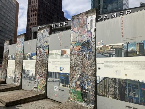 A következő napunkat a Reichstagban kezdtük. Miután a szigorú biztonsági ellenőrzést követően beléptünk a német parlamentnek helyet adó épületbe, az üléstermet fedő ellipszis alaprajzú üvegkupolából élvezhettük a panorámát. Az utunk innen a Brandenburgi kapuhoz, Berlin és egyben egész Németország jelképéhez, illetve a berlini holokauszt-emlékműhöz vezetett. Szabadidőnket a Portsdamer Platzon töltöttük, ezt követően pedig egy újabb történelmi helyszínt, a Checkpoint Charliet (a leghíresebb katonai ellenőrzőpont a vasfüggöny berlini szakaszán) és a fasizmus rémtetteit bemutató történeti múzeumot kerestünk fel. Az egykor Berlint keleti és nyugati részre osztó Berlini fal maradványaival lépten-nyomon találkoztunk, de leghosszabb eredeti, fennmaradt szakaszát, az 1,3 km hosszú East Side Gallery-t is láthattuk. Különös élmény volt végigsétálni a fal leomlása után 21 ország 118 művésze által festett szabadtéri galéria képei előtt.
