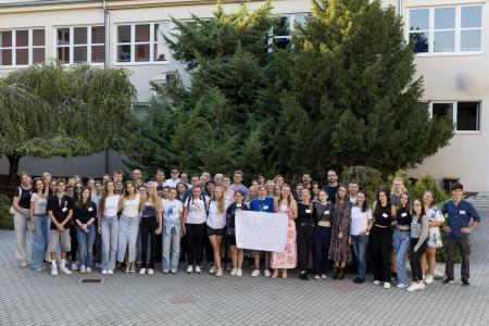 2025 szeptemberében iskolánk diákönkormányzatának képviseletében – Bognár Domonkos (11. A), a diákönkormányzat elnöke, Tóth Leon (11. B) és Német Gréta (11. A), valamint Simon Gáza Botond, a diákönkormányzat munkáját segítő pedagógus – látogatott el Petőfi Sándor szülővárosába, Kiskőrösre, az éves Evangélikus Diákparlamentre. A Kiskőrösi Petőfi Sándor Evangélikus Óvoda, Általános Iskola, Gimnázium és Technikum három napon át adott otthont több mint húsz iskola diákjainak az ország minden részéről.