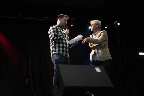 A zenekari blokk után korábbi eötvösös diákunk Pánczél Sándor stand up előadása következett, akinek humoros történetei és közvetlen stílusa mindenkit megnevettetett.