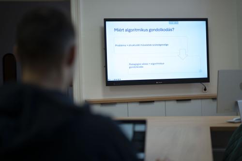 Kóczán Krisztián előadásában az algoritmikus gondolkodás középiskolai fejlesztésének lehetőségeit mutatta be a digitális kultúra tantárgy keretében. A bemutatott koncepció az algoritmikus gondolkodást nem pusztán programozási technikaként, hanem a problémák lépésekre bontását, a döntési helyzetek átlátását, a gondolkodási folyamat tudatos ellenőrzését és a hibák szisztematikus javítását támogató kompetenciaként értelmezi. Az előadás kiemelt eleme volt a gondolkodási műveletek pedagógiai értelmezésű, feladat- és rubrikaalapú mérési modellje, amely lehetővé teszi a tanulói fejlődés minőségi nyomon követését, összhangban a Nemzeti alaptanterv 2020 célkitűzéseivel.