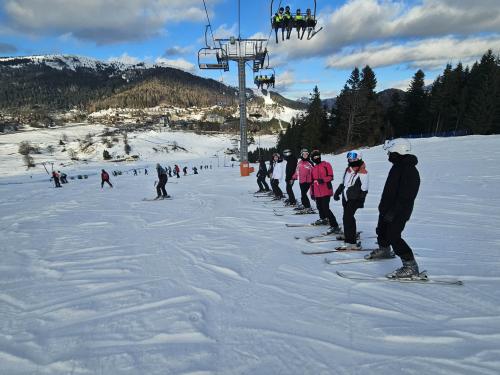 A kezdők hatalmas fejlődést produkáltak, nagyon ügyesek voltak. A hét közepén mindenki feljutott a beülős felvonóval a nagypályára, és szerencsére az oktatók kitartó munkájának eredményeként le is csúszott. Ezt az időjárás is díjazta: friss hó is hullott a pályákra, ezzel tökéletesítve a síélményt.