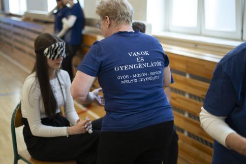 A program az iskolai órarendhez igazodva valósult meg forgószínpadszerű állomások várták a tanulókat az alsó tornateremben: vakfutás, akadálypálya, vakteke, játéksarok, ahol saját élményen keresztül tapasztalták meg a látássérült sportolók kihívásait. Az egyik állomáson a résztvevők betekintést nyerhettek a látássérültek világába, és lehetőségük volt személyesen is beszélgetni az érintettekkel.