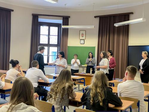 Az OKTV, érettségi és nyelvvizsgák anyagához igazodó nyelvi vetélkedőn iskolánkból tíz tanuló vett részt. Diákjaink az írásbeli fordulón szépen teljesítettek, és a 2026. március 20-án megrendezett szóbeli döntőre két versenyzőnk, Horváth Bálint András és Kerényi Sára is meghívást kapott. Tanítványaink lelkesen készültek a második fordulóra, de végül csak Bálint tudta képviselni az iskolát. A döntősök a „MI - Menschliche Intelligenz – Erfindungen aus dem deutschsprachigen Sprachraum” témában készült prezentációjukkal, szituációs gyakorlat megoldásával és képleírással mérték össze tudásukat a megye legjobbjaival. A szoros versenyben a zsűri elismerően nyilatkozott Bálint teljesítményéről és emléklappal jutalmazta azt.